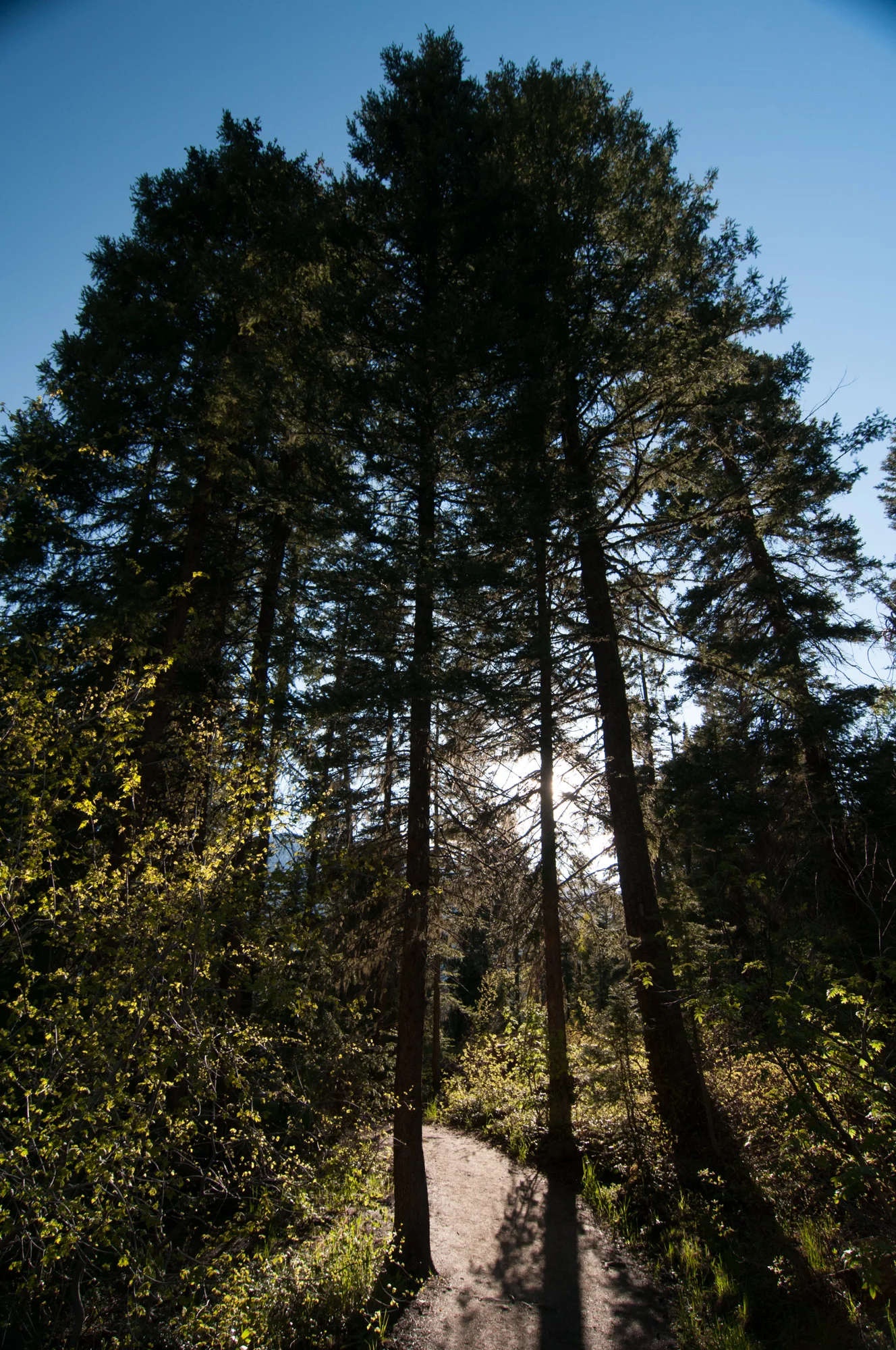 Driving along I see a sign posted East Fork Service Road. I pull off onto the dirt road and drive about half a mile in and come across the East Fork campground. Pine trees, mountains and plenty of space between camping spots. Just what I was looking for!