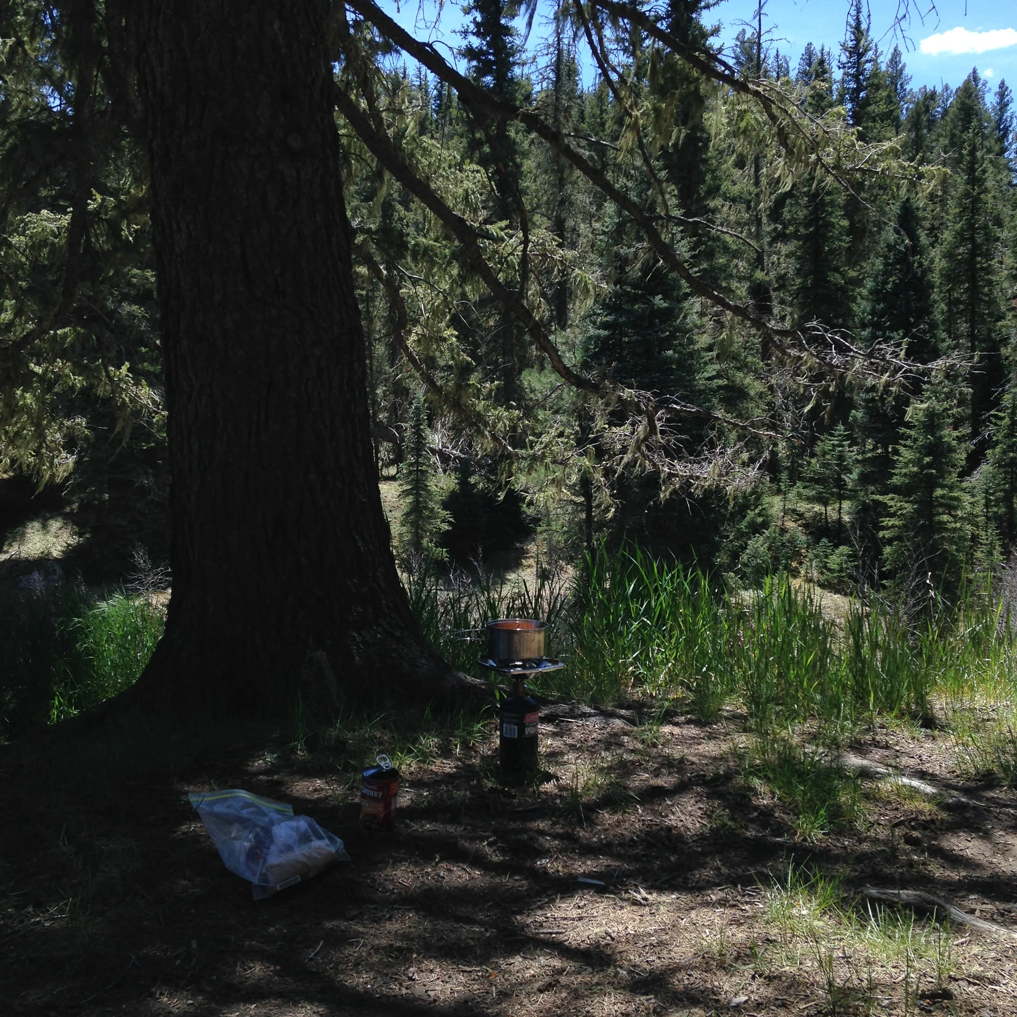 I have spent most of my life in Texas, in Texas we have an abundance of heat.  I was expecting cold weather on this trip, but I was not expecting mid 20 degree temperatures at 5am, I am used to low 70s in the morning, not the mid 20s.  It is amazing how much of a difference 9000 feet of elevation can make.  Thankfully I thought ahead and brought some extra blankets that I lovingly shoved into my sleeping bag for some added warmth.  After warming up from my brisk more for about an hour I finally crawled out of my tent and proceeded to make my self breakfast.